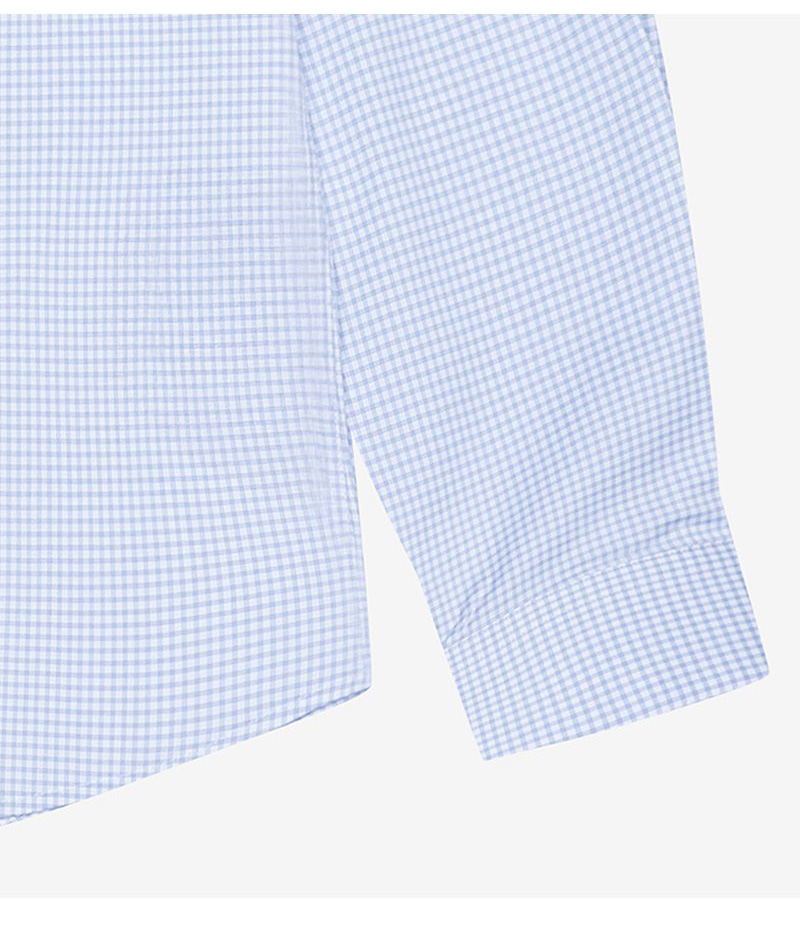 Thiết kế sơ mi mang tinh thần refined smart, nổi bật với họa tiết micro check tinh tế giúp tổng thể có chiều sâu nhẹ, tạo sự khác biệt so với các dòng sơ mi trơn nhưng vẫn giữ được sự thanh lịch.
