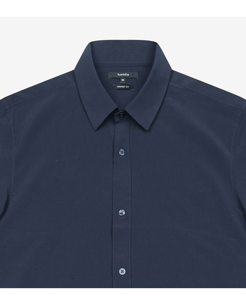 Chi tiết cổ áo được thiết kế với hidden button (nút ẩn) giúp giữ form cổ luôn gọn gàng, đảm bảo tổng thể luôn chỉn chu mà không cần chỉnh sửa nhiều.