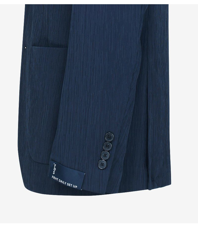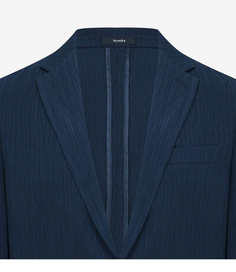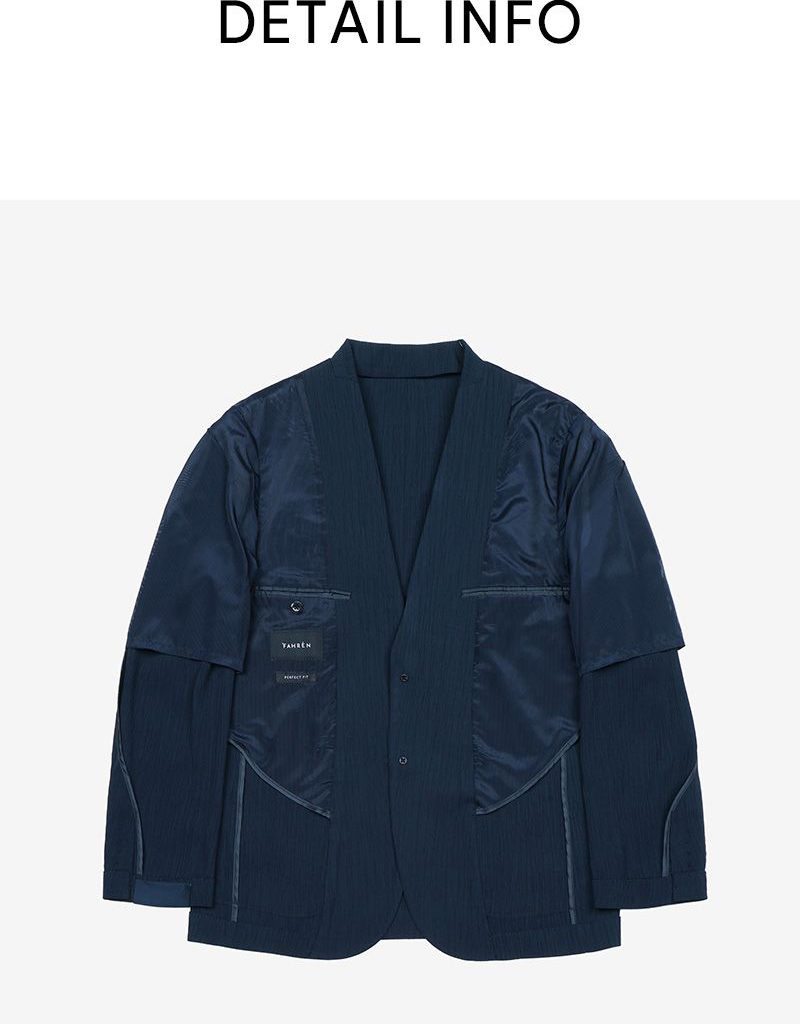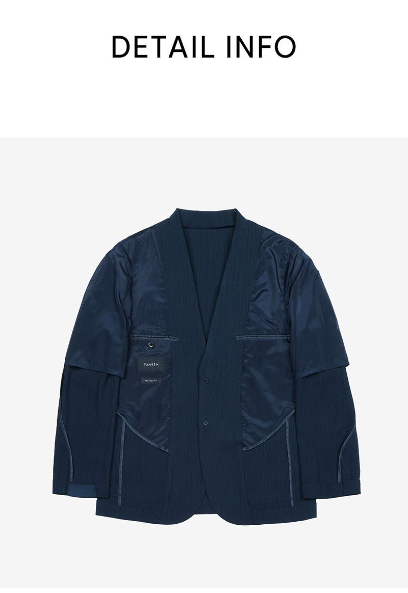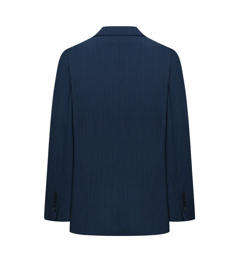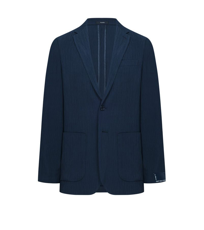 Thiết kế jacket mùa hè mang tinh thần modern tailoring, sử dụng chất liệu xử lý creased đồng bộ giúp tạo hiệu ứng bề mặt tinh tế, đồng thời tăng cảm giác nhẹ và thoáng khi mặc.