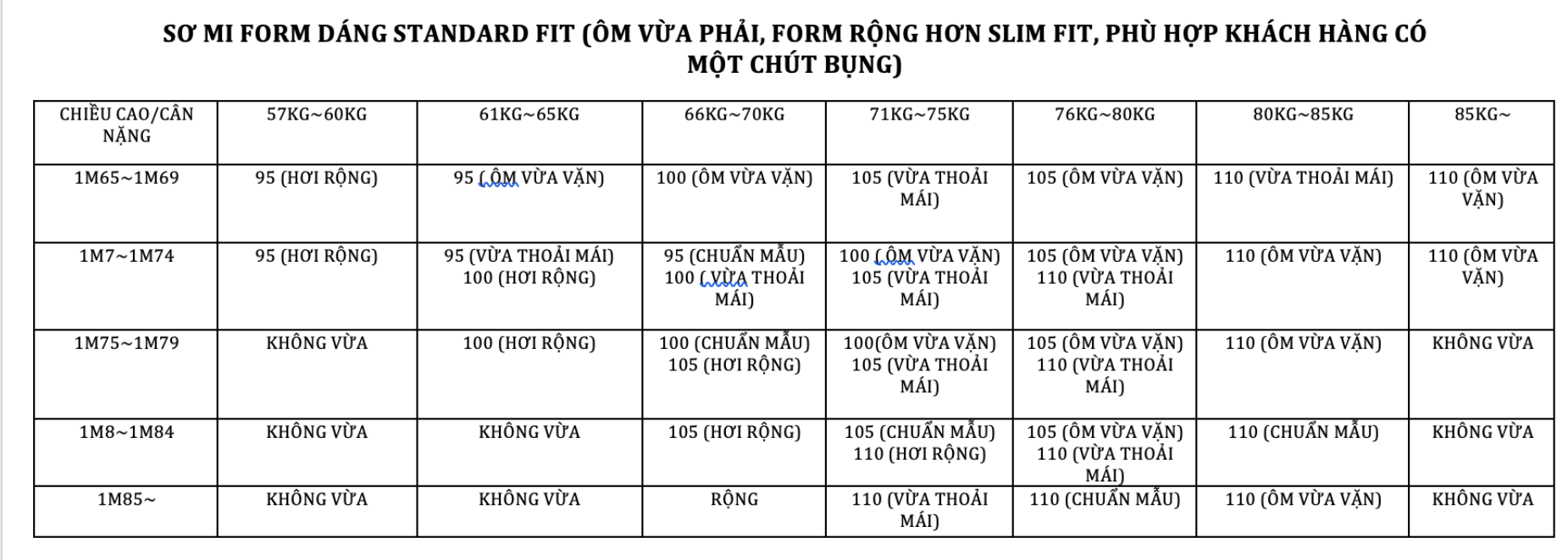 Form dáng: Standard Fit ôm cơ thể vừa vặn, thoải mái mà vẫn tôn dáng.